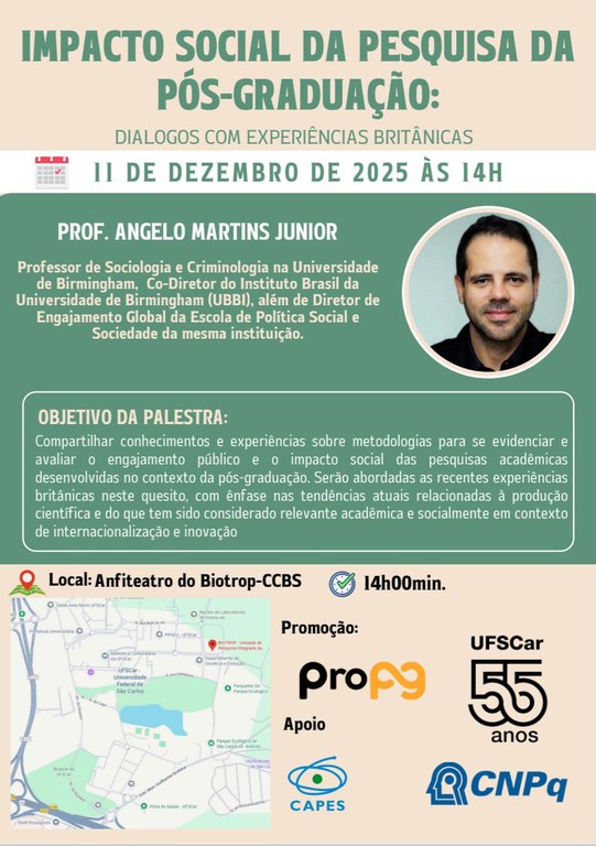 PALESTRA - IMPACTO SOCIAL DA PESQUISA DA PÓS-GRADUAÇÃO: DIÁLOGOS COM EXPERIÊNCIAS BRITÂNICAS