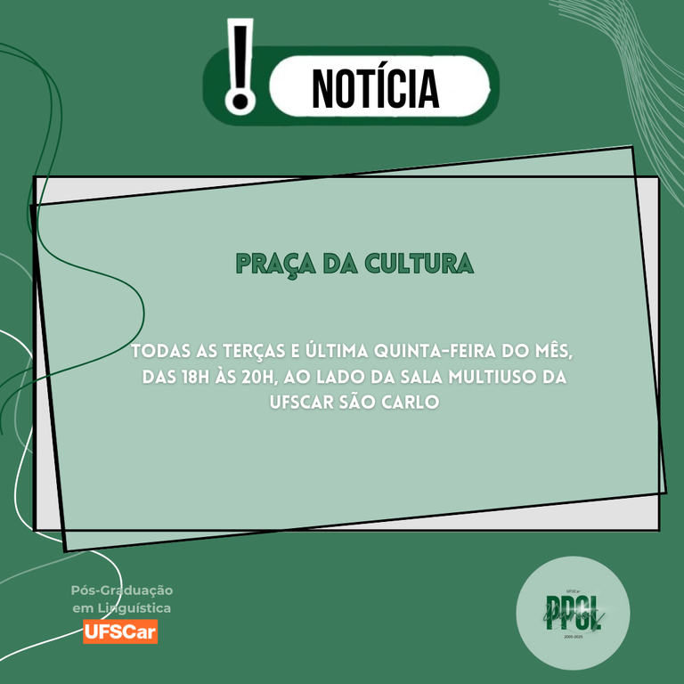 As informações e opiniões aqui expressas são fornecidas 'como estão', apenas para fins informativos e não constituem conteúdos produzidos pelo PPGL, apenas damos divulgação à comunidade. Em caso de dúvida, entre em contato com os organizadores/responsáveis. Não assumimos qualquer responsabilidade por imprecisões, erros ou decisões tomadas com base neste material.